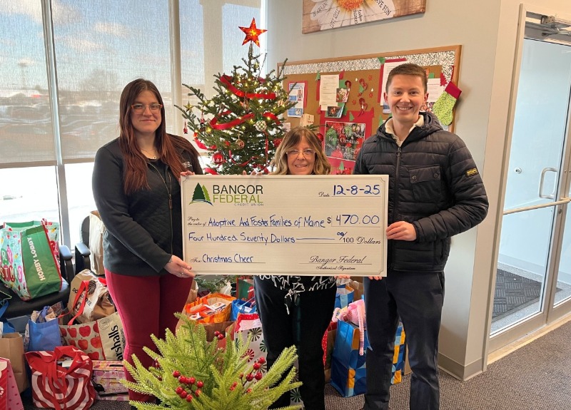 This year, Bangor Federal's staff made Christmas a little brighter for kids in foster care by donating toys for 17 children, stockings for 10 more, and presenting the organization with a check for $470! The need grows more and more every year with the AFFM office in Brewer covering children from Bangor to Madawaska, Calais to Jackman, and everywhere in-between.
