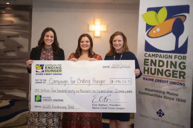 Each year, nearly all of Maine's credit unions participate in the Maine Credit Unions' Campaign for Ending Hunger. Since 1990, the year that this collective effort began, Maine's credit unions have raised and distributed more than $16.3 million for ending hunger in Maine. In 2025 alone, Maine credit unions contributed $1,496,116.71 to combat hunger, $36,538.02 of which was from Bangor Federal, its employees, and amazing members.